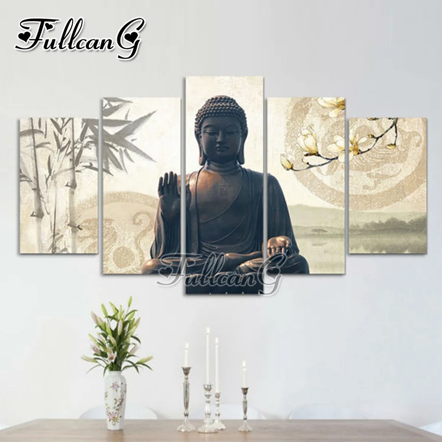 FULLCANG diy 5pcs/set diamond painting "bamboo buddha flower" full drill rhinestone cross stitch mo