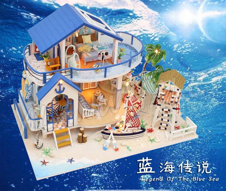 BEST Miniature Doll House Sea Beach Villa DIY Unisex Wooden Dollhouse With Furnitures Crafts Adult Teena