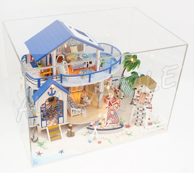 Miniature Doll House Sea Beach Villa DIY Unisex Wooden Dollhouse With Furnitures Crafts Adult Teena